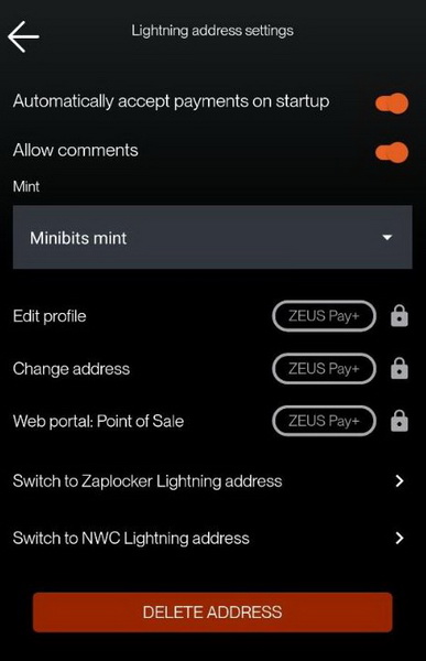 - Configure seu endereço LN do Zeus em qualquer cliente NOSTR e comece a receber zaps. Esse endereço LN pode ser usado a qualquer momento para receber, mesmo quando seu Zeus não estiver online. Ele usa uma miner Cashu como "zona de buffer" e você pode resgatar os tokens quando quiser.