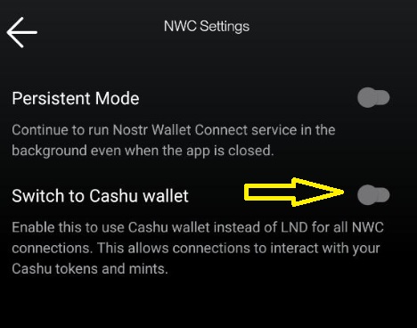 Mais tarde, quando você tiver um canal LN, poderá alternar da carteira Cashu para o saldo do canal LN e o NWC usará esse saldo, não o Cashu.
